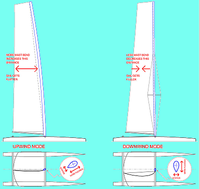 Lo spanner agisce invece come una specie di vang in senso orizzontale. Cazzando la cimetta di regolazione, l’albero si orienta nella direzione del boma. Lascandola si orienta invece per conto suo.