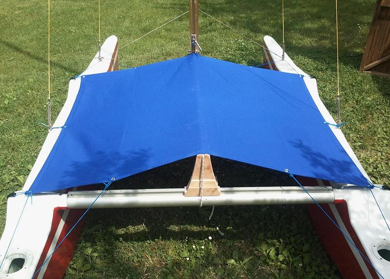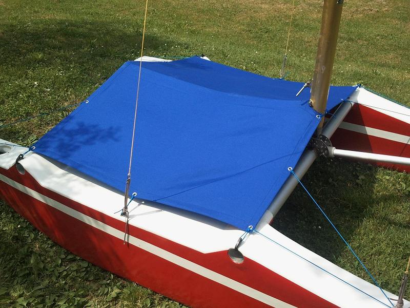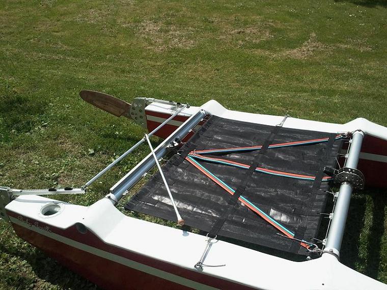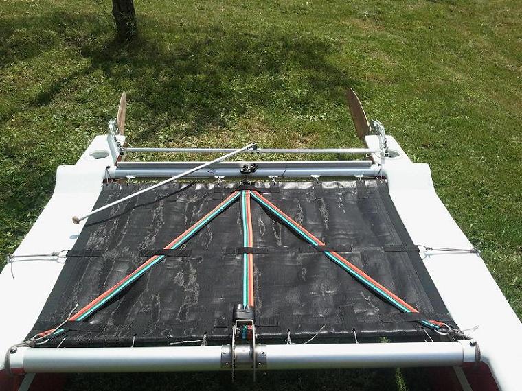 Si, conosco il problema perché l’ho sperimentato anch’io l’anno scorso. In realtà il fenomeno era abbastanza sporadico. Comunque ogni tanto capitava che non trovavo più la scottina del carrello perché scivolava fuori bordo attraverso la fessura posteriore fra trampolino e traversa. Questo trampolino dovrebbe essere meno scivoloso dell’altro. Vedremo che succede. Al limite chiudo la fessura con una retina leggera fissata tra le cime. Quelle laterali non dovrebbero invece creare problemi. Non avendo più la barra laterale di sostegno, ho allargato il trampolino portandolo quasi a filo scafo. La fessura che si vede è solo in altezza e si chiude sotto il peso della bestia....