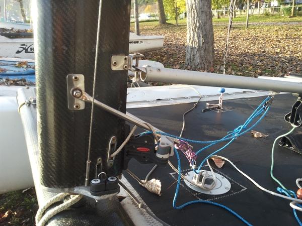 L’albero ruotava automaticamente, ma si posizionava sempre quasi al traverso, anche nella bolina stretta. Forse servirebbe il sistema di regolazione come sugli altri catamarani. Purtroppo flette lateralmente anche abbastanza e non è perfettamente dritto ma leggermente imbananato verso sinistra, per cui sto valutando di inserire il diamante.