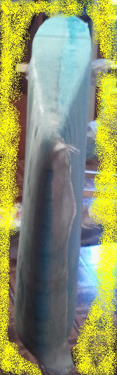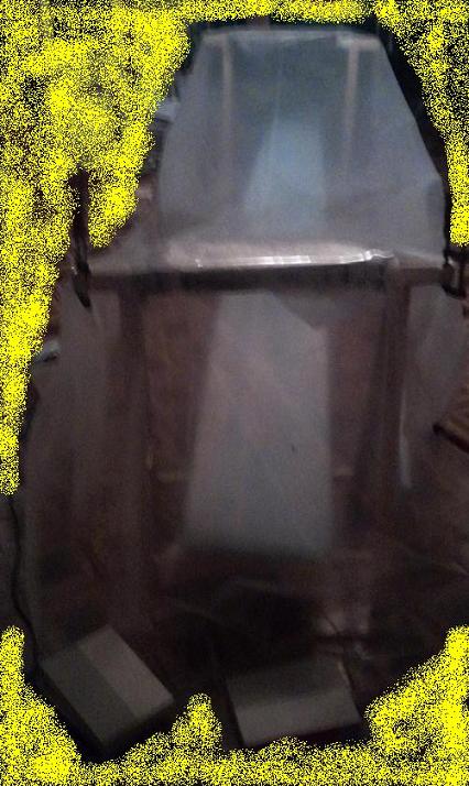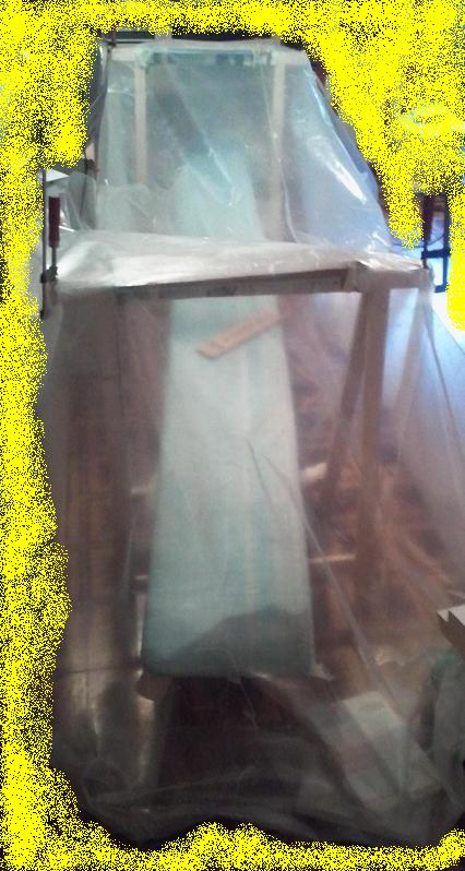 qui sotto il fornetto improvvisato messo in funzione dopo circa 7 ore dall’applicazione del peel ply (la prima mano di impregnazione era stata data da più di 9 ore), quando la resina era ormai asciutta al tatto e si poteva muovere l’ama senza timore di eventuali distaccamenti del tessuto. Purtroppo il telo era un po’ corto. Con due stufette al primo livello sono riuscito ad ottenere una temperatura costante e uniforme intorno ai 30-31 gradi. La post cottura (se così si può chiamare) è durata circa 5 ore. Questa mattina dentro il fornetto c’arano 22 gradi, contro i 18 della stanza.
