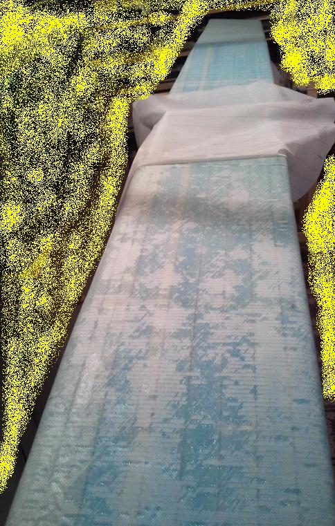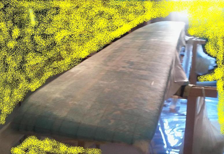 Ora lascerò indurire bene per qualche giorno senza più toccarlo. Il peso è aumentato di circa 2 Kg (sono stati laminati circa 1,5 mq). Ora siamo a 7,7 Kg