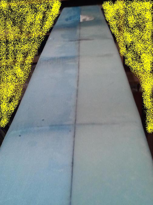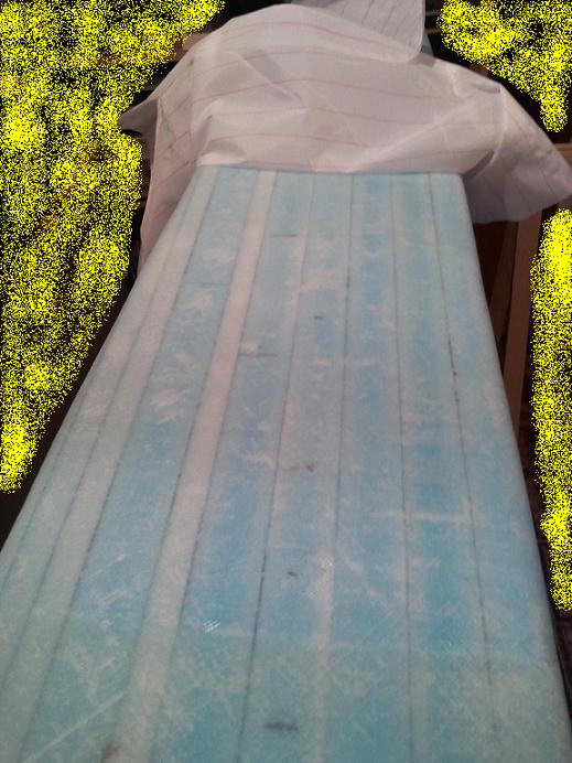 Purtroppo nella zona di prua, per una lunghezza di circa 60 cm, la superficie non è venuta perfettamente liscia. È stata la parte da cui è iniziata la laminazione e quando è stato applicato il peel ply la resina era già abbastanza avanti con l’indurimento rispetto alla zona poppiera. Oppure ne è stata messa poca e non è riuscita a livellarsi bene, o per altre ragioni che ora non saprei spiegare. È la prima volta che uso il peel ply  Lo stucco mi aiuterà.