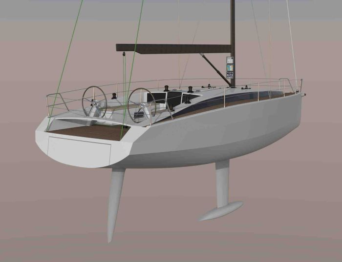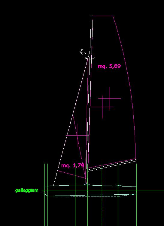 L’armo frazionato risponde a queste esigenze: - abbassare il centro velico (riducendo il momento sbandante) - evitare le mani di terzaroli alla randa. In caso di vento forte si naviga in versione cat (solo randa). Ovviamente dovrò poi tenerne conto nel posizionare le lame di deriva (trovando una soluzione di compromesso compatibile con i due piani velici).