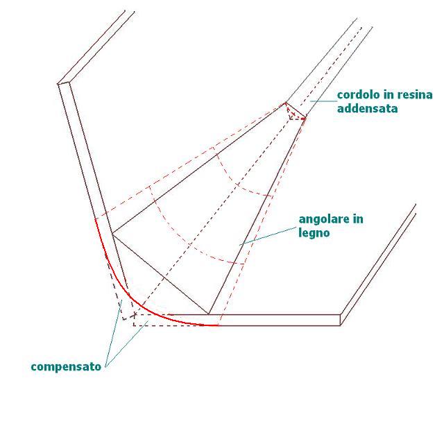 L’arrotondamento dello spigolo si può ottenere anche in altri modi, ma in barche così piccole si sente di più la sottrazione di volume utile al galleggiamento, da compensare poi con una maggiore larghezza e/o una maggiore immersione (anche se con una sezione rotonda, anziché rettangolare, hai meno perimetro, cioè superficie bagnata, a parità di volume).