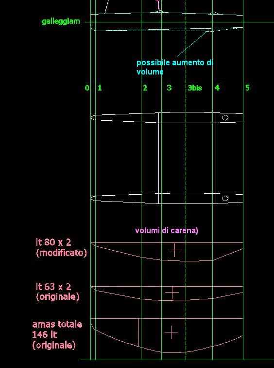 volumi di carena (al gallegiamento per scafo centrale - tolale per amas) Immagine:
