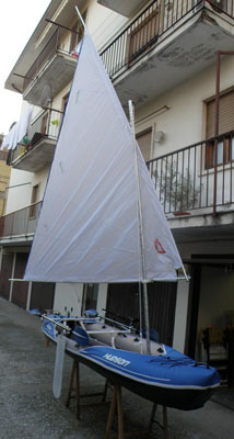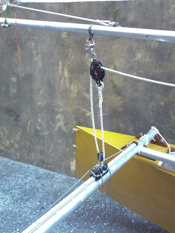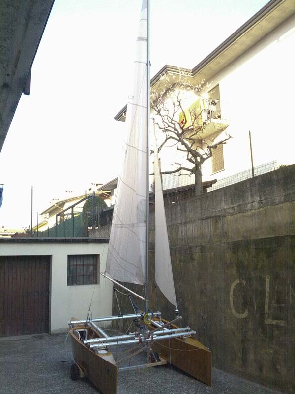 Mi sono anche reso conto che utilizzando due stralli e due sartie è molto più facile alzare l'albero, e pure con il bompresso non più sostenuto dallo strallo, ma solo dal fiocco, cazzando la dritta del fiocco la tensione delle sartie ne soffre meno.