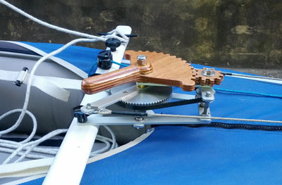 Io ho posizionato la scotta in quel modo per non avere nessun impedimento con la barra e lo stick dei timoni. Portando lo strozzatore della scotta sulla traversa posteriore, che fra l'altro è come fanno quasi tutti, quando si cambia bordo, è facile lo stesso girare il timone?