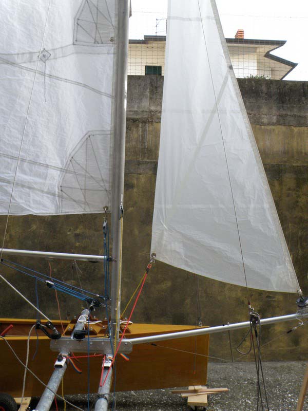Avevo comunque deciso di montare il carrello sulla traversa posteriore con la scotta strozzata a poppa, per cui non ho ulteriormente approfondito il fenomeno.
