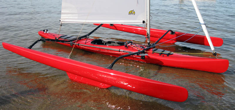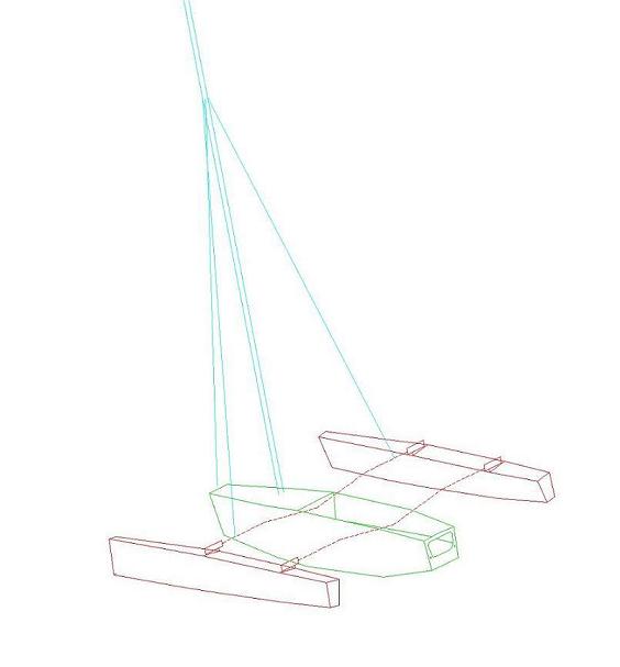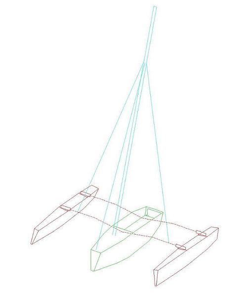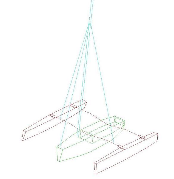 Considera che il peso dell'equipaggio è, per la maggior parte del tempo, sopportato dallo scafo centrale. E così anche la spinta del vento, supposto che l'equipaggio in condizioni ventose si sposti sul trampolino sopravvento.
