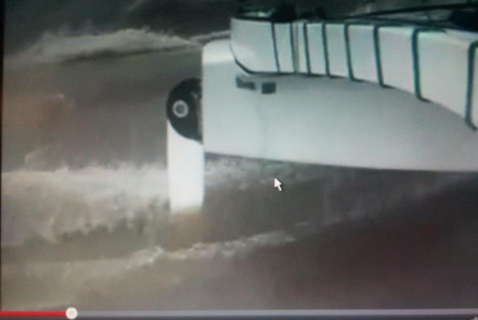 Riguardando bene il filmato, mi sembra che poppa e rocker di quel tri siano ok, e che l’effetto scia (comunque inevitabile) parta da sotto lo scafo, molto probabilmente dal punto più profondo dove il profilo di carena inizia a salire verso poppa.