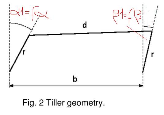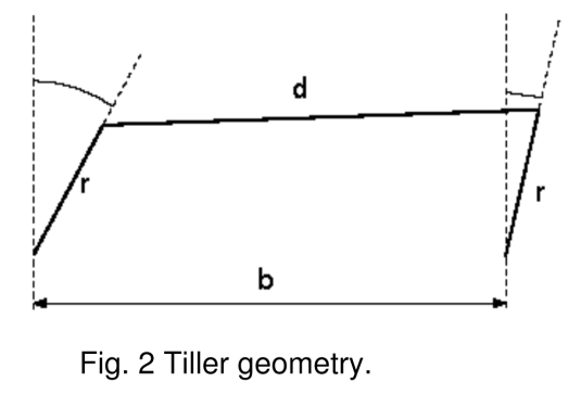 d è la barra di comando; b la distanza fra gli agugliotti dei timoni; r sono le barre dei timoni.