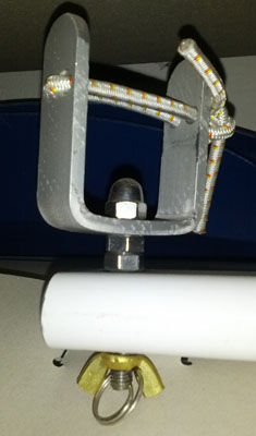 Se nel punto in cui il tubo di alluminio si piega, non potresti mettere una doppia carrucola, così devii le cimette lungo la barra?