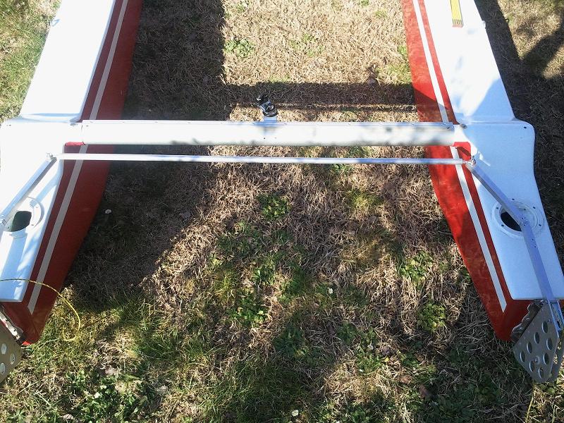 Ho alluminio sufficiente per fare altre due barre curve, e se riesco a studiare un sistema di rinvio delle cimette (alza e abbassa pala ) semplice ed efficace, mi piacerebbe più la soluzione in viola che vedi nella foto inserita il 3 febbraio. Così avrò ancora più spazio per sedermi verso poppa e gli strozzatori più a portata di mano.
