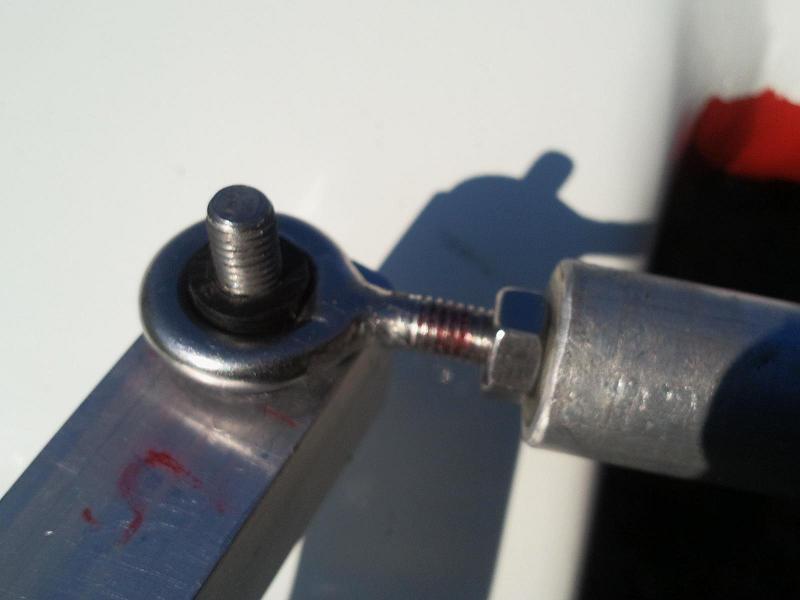 La renella piccola tra il galletto e l’altra grande (tutto ovviamente inox) è del tipo spezzato. Comunque è meglio mettere il galletto in alto e bene in vista, in modo da accorgersi se si dovesse allentare. Sotto, tra la barra e la testa del bullone, ho invece messo una ranella in derlin.