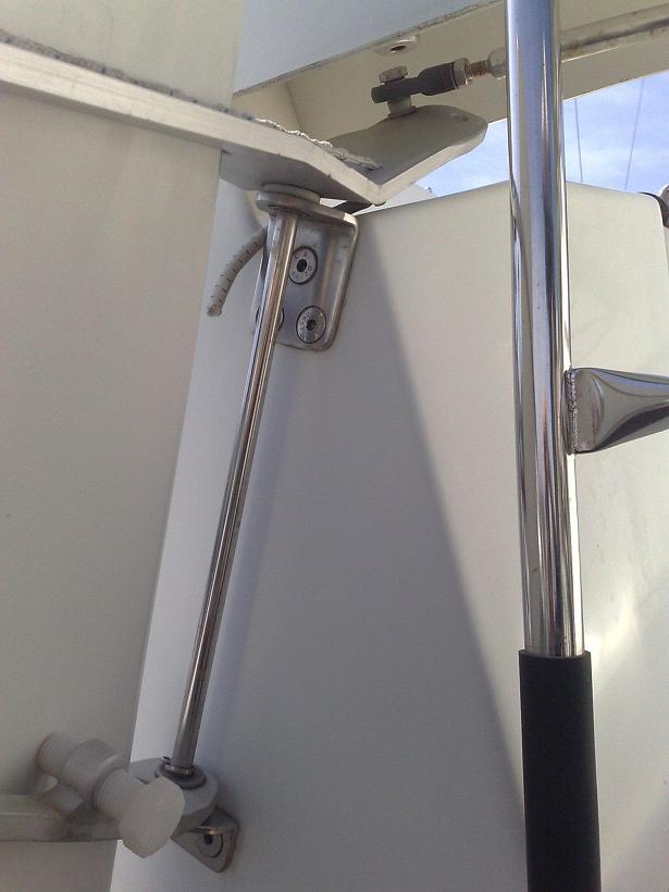 Utilizzavo uno snodo simile per lo stick della deriva (Alpa Brise). Un giorno si ruppe in navigazione e per poco non finivo a mollo. Lo rimpiazzai con un vecchio snodo della Beta per chiavi a T. Funzionava egregiamente e qualche anno dopo fu venduto insieme alla barca. Sul catamarano ho optato per quello inox, più robusto e insensibile a calore e UV (v. foto a pag. 8).
