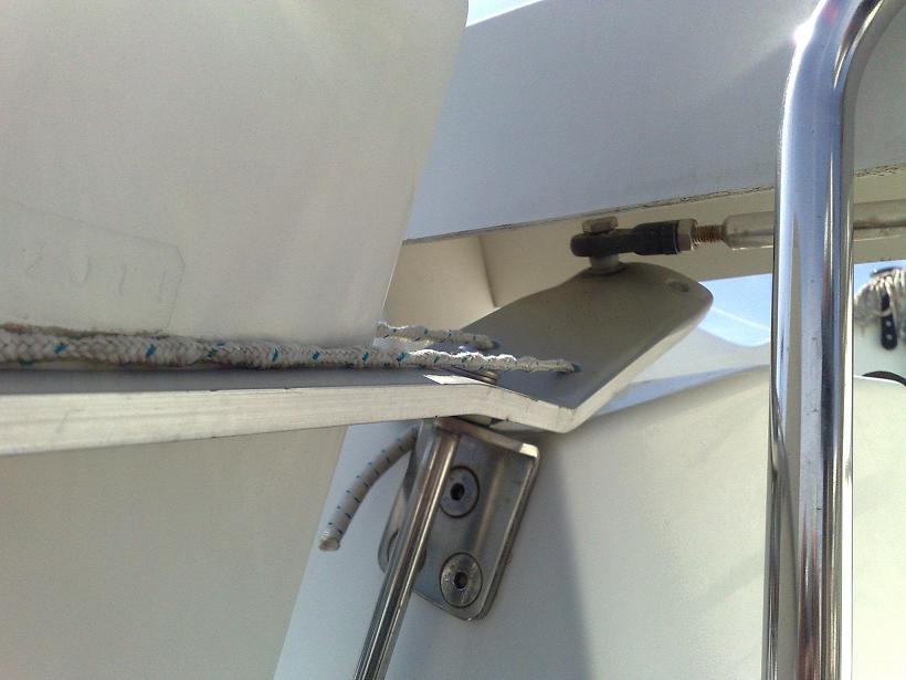 Comunque ho già una mezza idea su come risolvere. Nella curva potrei saldare un quadratino di alluminio (10x10 mm) forato e sagomato con la limetta per togliere angoli e asperità che mangerebbero velocemente la cima. Ovviamente la curva sarebbe più arretrata verso il timone, ma il concetto non cambia.