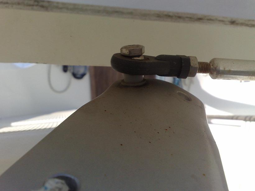 Come già dissi, l’estate scorsa utilizzai gli Uni Ball che mi costarono ben 20 euro (la coppia), nonostante fossero in acciaio zincato. Anche questi offrono ampie possibilità di movimento. Non come lo snodo per stick, ma più del sistema che ho adottato oggi e che è il più diffuso tra i catamarani. Pensavo di aver avuto un’idea geniale perché li usano sul First 211 per collegare i suoi due timoni (immagino anche nelle versioni successive fino al 21.7, sui Minitransat e su altre barche con timoneria simile).