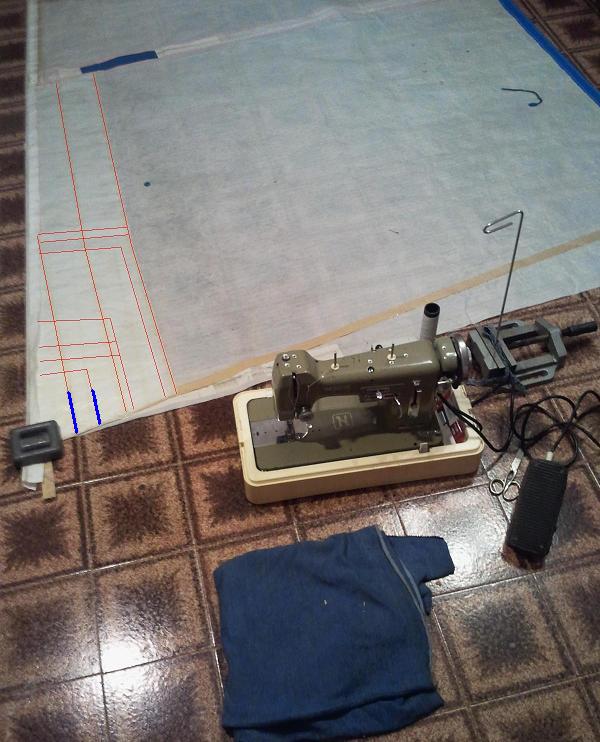 I problemi maggiori li ho avuti con il sistema di trascinamento, obiettivamente non concepito per trasportare grosse e pesanti quantità di tessuto. In certi punti ho preferito ruotare il volantino a mano (su questo aspetto dirò poi qualcosa nell’altra discussione sulle macchine per cucire), per riuscire ad andare un po’ più dritto seguendo i punti precedenti. Anche nei punti più spessi ho preferito ruotare a mano, evitando però di forzare eccessivamente.