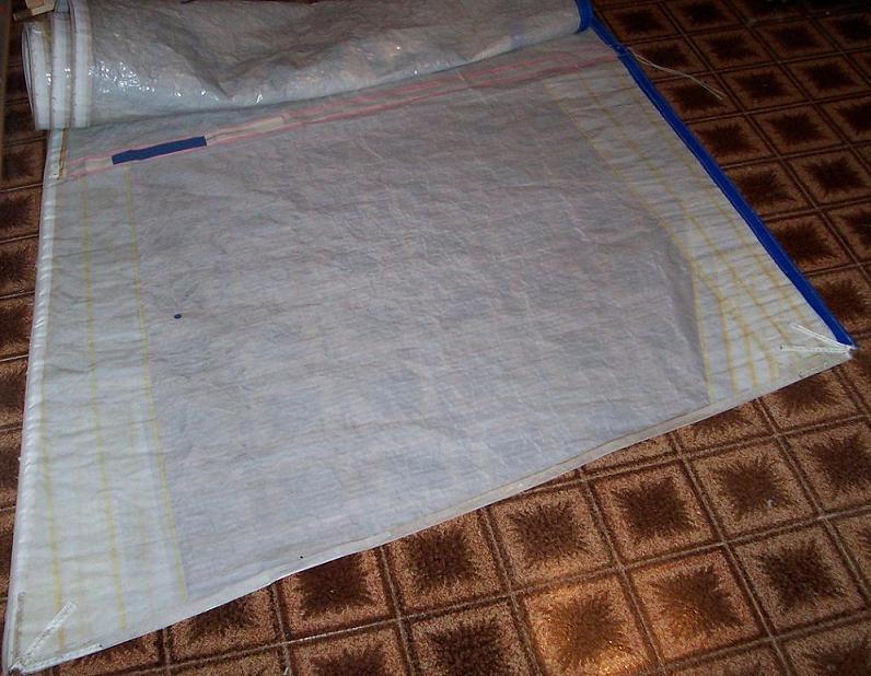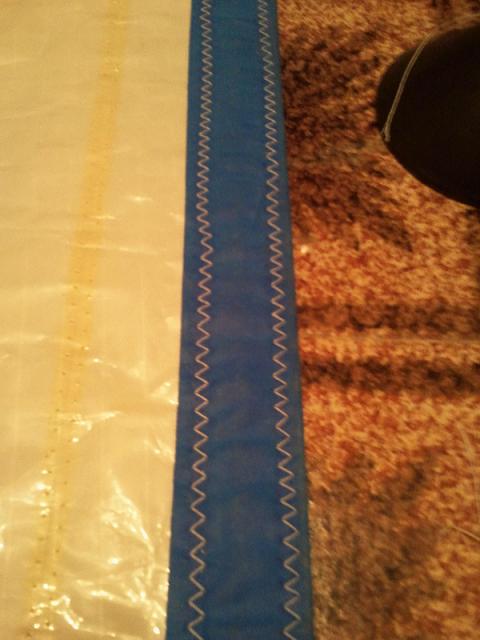 Questo weekend dovrei portarmi abbastanza avanti con la randa. Ho quasi finito di cucire la bugna di scotta.