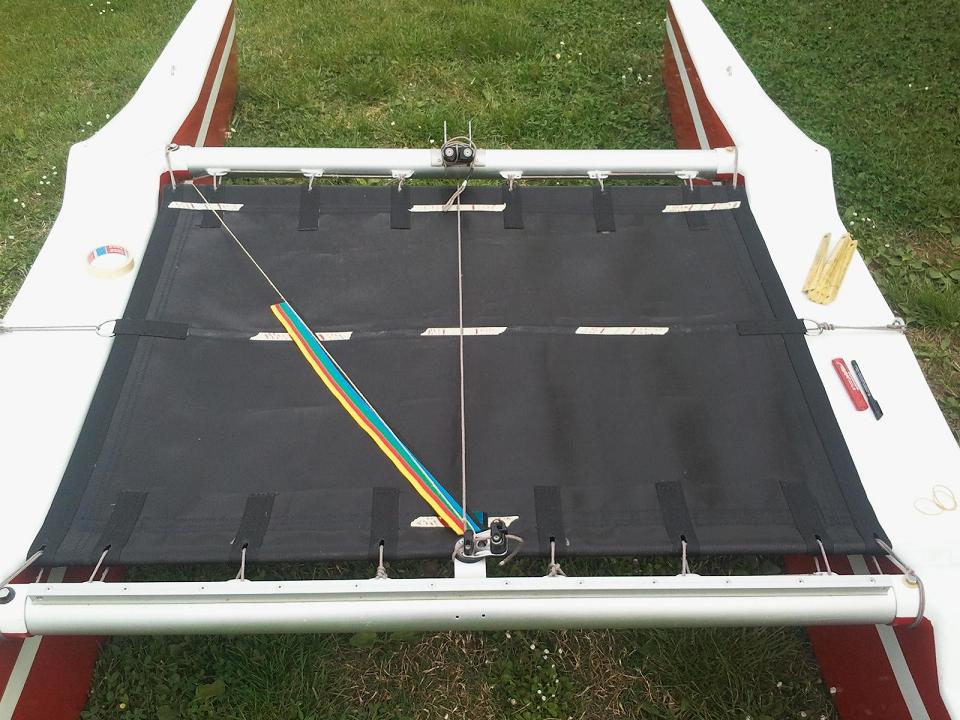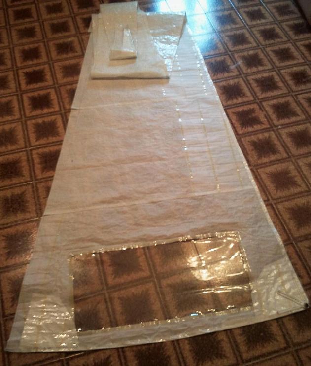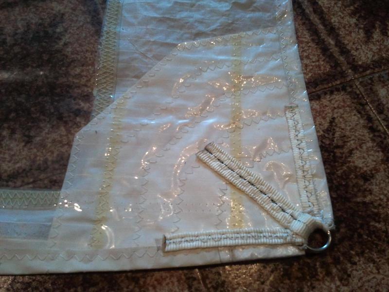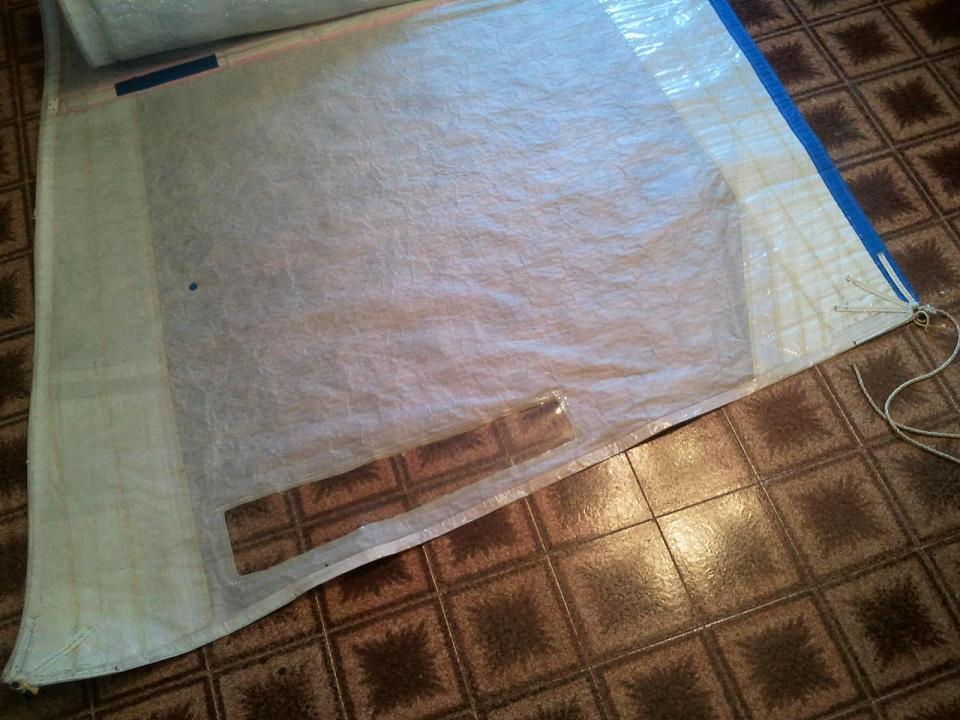 Randa finita. Ho fatto anche la finestrella. Ovviamente tutto materiale riciclato dalla vecchia randa. Si potrebbe dire che l'ho trattata come un "maiale".... cioè non ne ho buttato via niente...