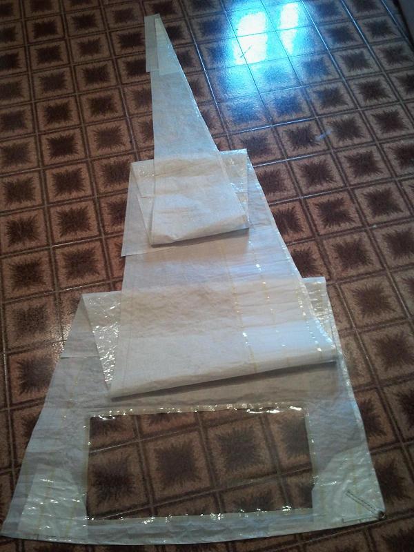 Prima del trampolino voglio fare un nuovo fiocchetto (2 mq. quindi circa 0,5-0,6 mq. più dell’altro) usando la rimanenza della (ormai ex) randa classe A e di cui ho quasi completato la progettazione.