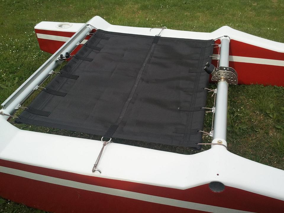 Io ho fatto il trampolino del mio cat con rete antigrandine, che è molto robusta, sopporta gli UV, fa passare aria e acqua, ma ha lo svantaggio di essere molto dura al contatto con la pelle. E' anche vero che io in barca non ci vado mai, quindi alla fine il materiale del trampolino ha poca importanza... purtuttavia, nell'ipotesi volessi di nuovo solcare le onde, per favore mi linkeresti il materiale che hai usato tu? Grazie.