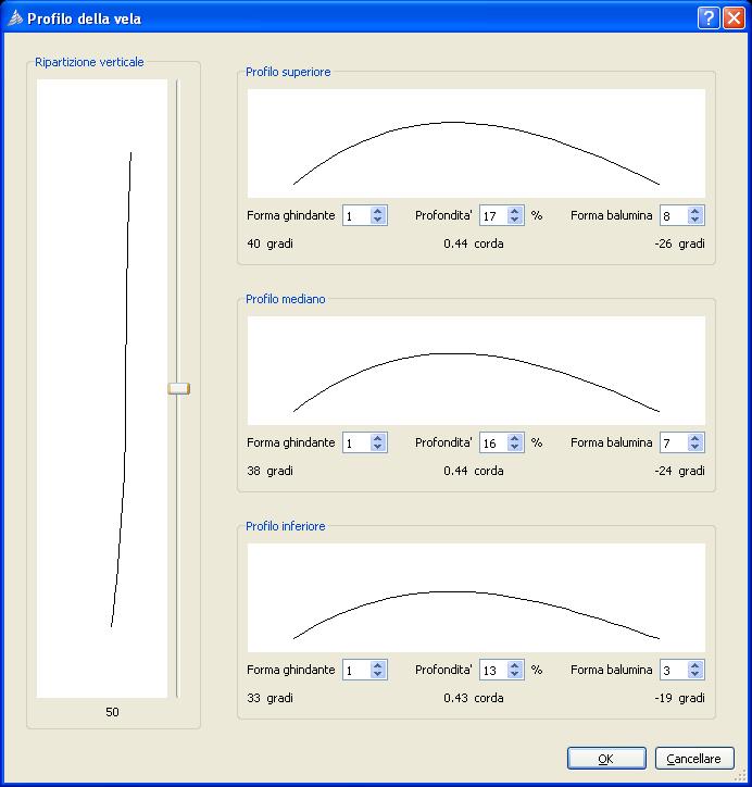 Se vuoi ti mando i file (Sailcut e DXF). Comunque attenzione a copiare “paro paro”. Alcuni valori vanno inseriti in base alle caratteristiche della barca e altri in base alle caratteristiche che vuoi dare alla vela. Quindi ciascuno ha le sue.