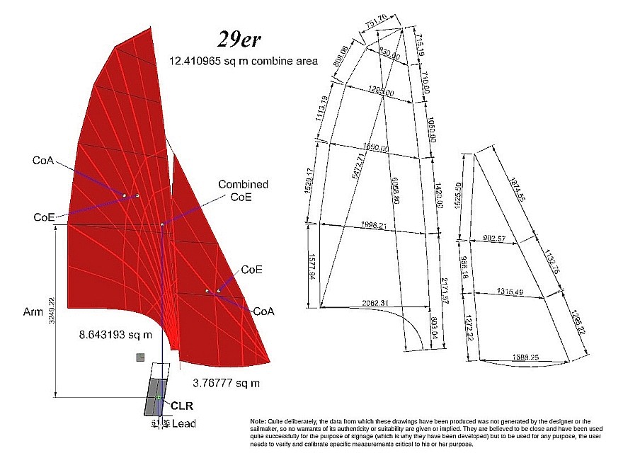 A tal proposito ho trovato questa tavola relativa alle vele + deriva del 29er (che credo di aver già postato in un'altra discussione):