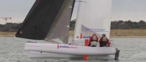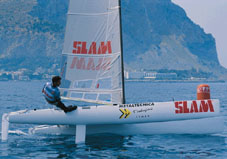 Passiamo ora ad un cat (in effetti non è un cat ma un tri con le derive sugli scafi laterali, però il discorso non cambia):