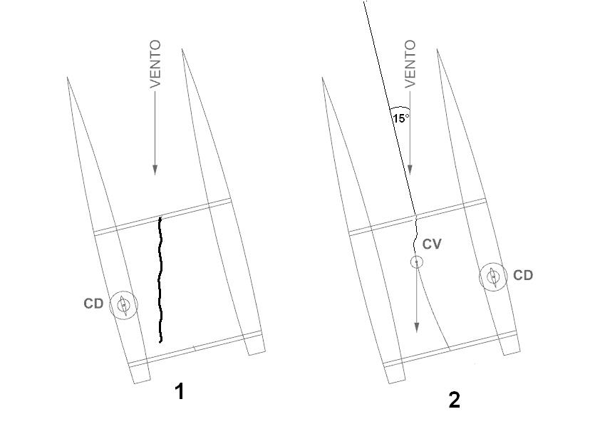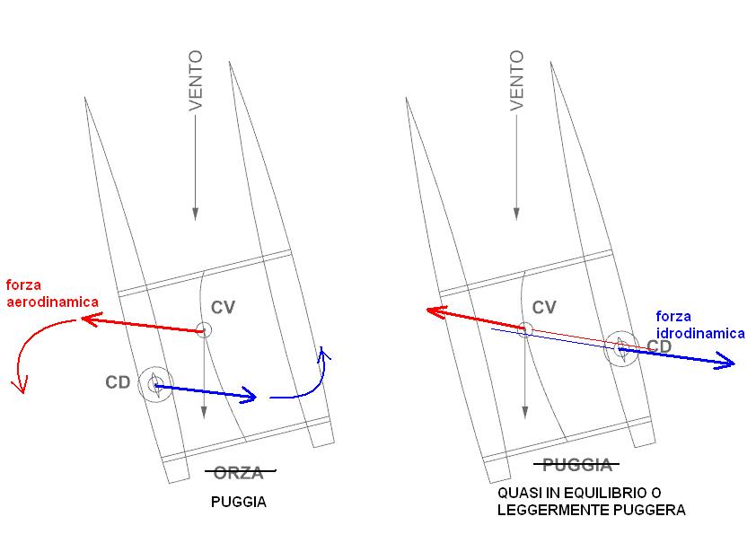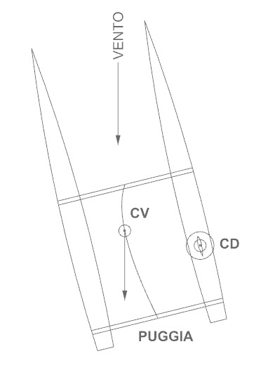 Vi è poi da dire che il centro velico e di deriva non cadono nel centroide geometrico delle rispettive superfici, ma più avanti.