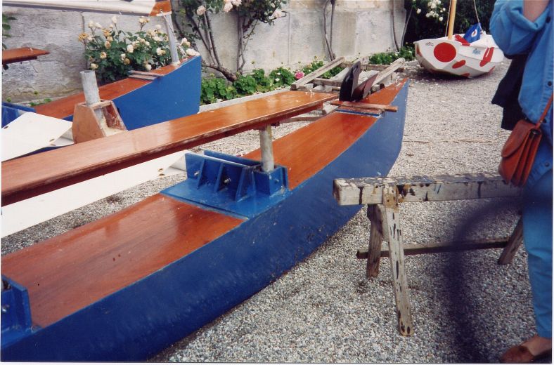 127,37 KB In quest'altra foto un altro Trio, ritratto sempre nella medesima occasione sul ghiaietto dello splendido giardino della splendida Villa Pizzo. Notasi le sezioni a V delle carene. In questo esemplare le ruote di prua hanno un raggio molto più ampio rispetto all'esemplare visto prima.
