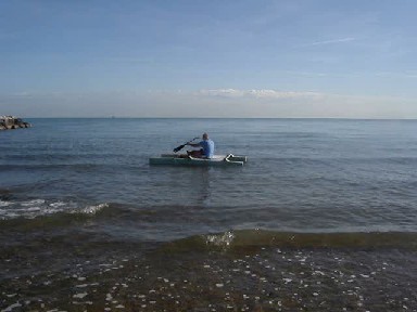 Nulla di rilevante segnalare. Dentro uno scafo è entrato circa mezzo bicchiere d’acqua, segno che qualche foro non è stato sigillato a dovere. Provvederò. Confermata la scivolosità del trampolino in PVC, ma stando praticamente sempre seduti, la cosa non crea particolari problemi, anzi aiuta a passare più velocemente da una mura all’altra.