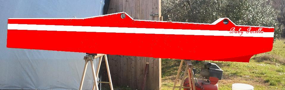 Vedremo dopo il carteggiamento generale di quale stuccatura (leggera o pesante) avrà bisogno il Gorillino. Vorrei comunque evitare (anche a costo di qualche inestetismo) ulteriore aumento di peso, visto che le modifiche apportate riguardano, per lo più, lavori doppi, cioè eseguiti sopra la pelle esterna che si sarebbe potuta evitare se previsti fin dall’inizio (almeno + 1,5 kg a scafo). Sicuramente il guadagno in robustezza è stato notevole, ma è importante anche la leggerezza. Al momento gli scafi pesano intorno ai 17 Kg ciascuno.