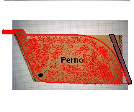 Ovviamente ho dovuto ricorrere all’immaginazione per le misure che non hai indicato (angolo, spessore della cassa, posizione del perno, ecc), quindi potrebbero esserci altri errori, ma credo che mi perdonerai Es. Se posizioni il perno a 2x2 (anziché a 3x3) guadagni un cm in profondità e aumenti la superficie.