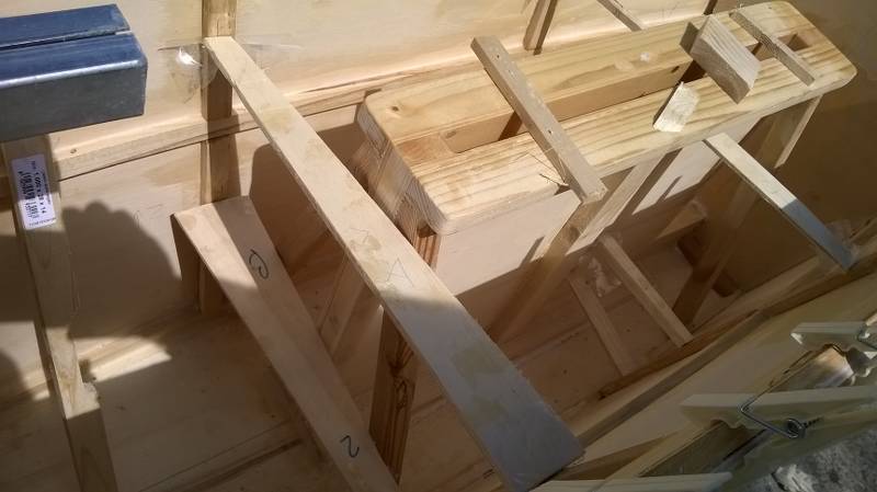 Nelle tre foto successive si dovrebbe capire come fisserò i supporti al ponte: 1) Tavola di compensato 2 cm sotto la coperta per il fissaggio dei prigionieri.