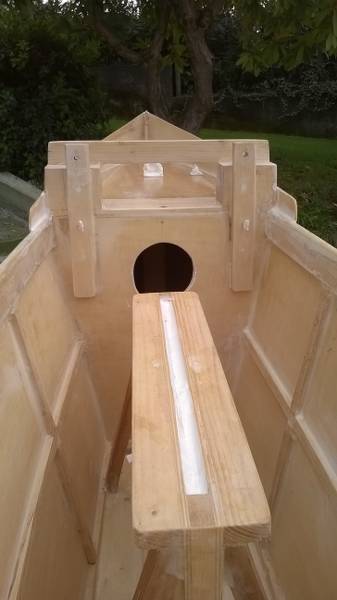 se puó servire, questa la soluzione che ho adottato io per irrigidire, tenendo conto che è un multistrato di pioppo da 4mm. peso 90 e in regata non ho problemi (di resistenza del telaio) passando tutto il tempo sui bordi dello scafo centrale e trampolini