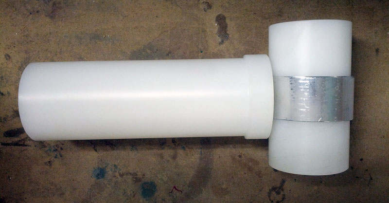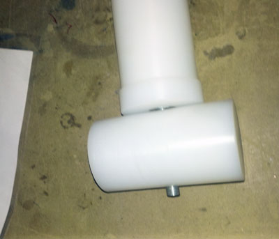 Il pezzo più lungo è infilato dentro il tubo longitudinale, e lo scalino, impedendo che il cilindro entri nel tubo, lo rende inamovibile una volta al suo posto. Il pezzo tondo di traverso è infilato dentro il tubo trasversale, in modo che il peso del trampolino e dell'equipaggio non sia supportato dal foro nell'alluminio, che anzi è più largo del necessario, ma solo dal cilindro di teflon.