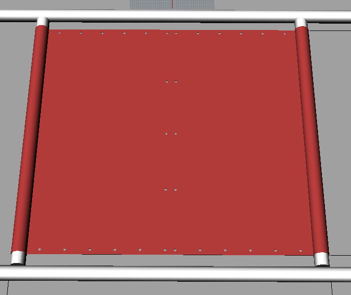 Infilato sui tubi longitudinali e legato con due corde sui tubi trasversali.