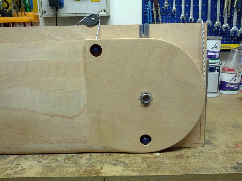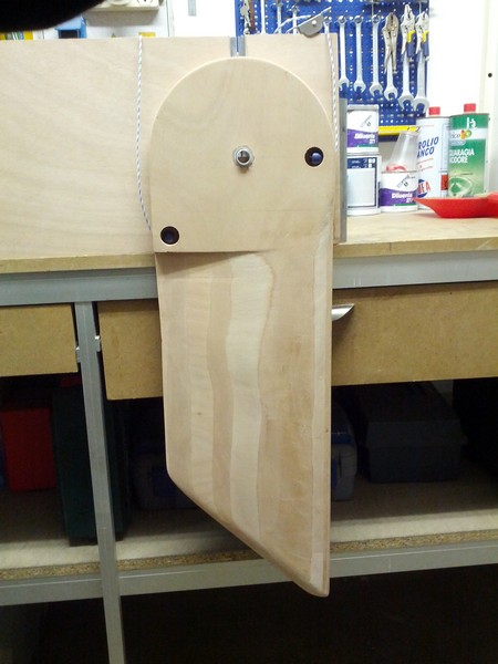 Fatto i fori per le cime di ritenuta e sollevamento, metto qualche foto. Forse ora si capisce un po' meglio il meccanismo.
