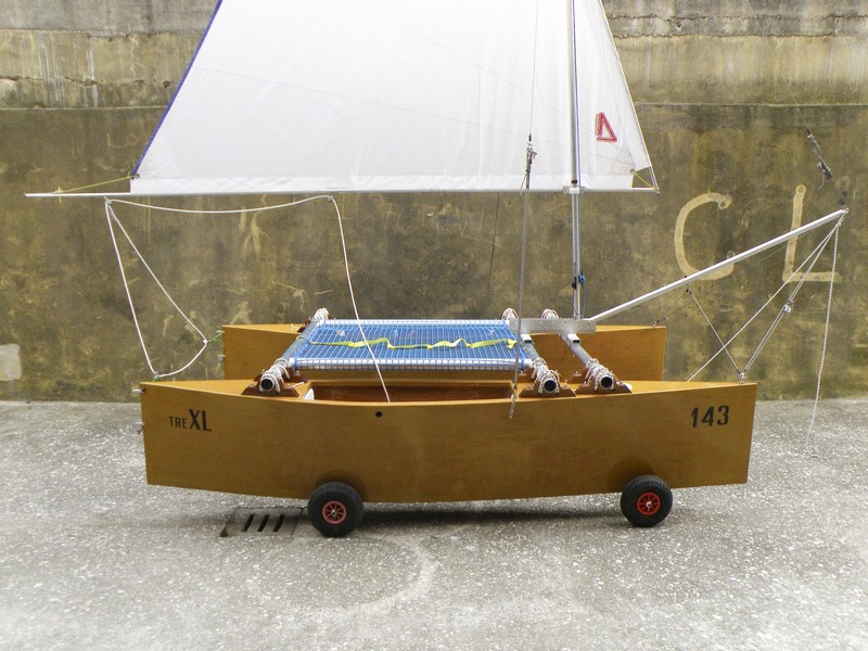 La fine dei lavori è sempre una bella soddisfazione, ma il mio momento più commovente fu quando il Baby mosse i suoi primi passi (si fa per dire)… nell’acqua. Quel giorno c’era pochissimo vento e non era facile farlo partire. Il mare era quasi olio e la bavetta si percepiva appena. Poi, all’improvviso, sentii scorrere l’acqua lungo gli scafi e vidi che dietro i timoni si formava una piccola scia. La mia creatura stava veramente navigando   Quasi non ci credevo e confesso che una lacrimuccia mi cadde dall’occhio