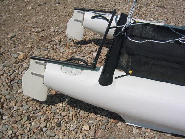 Se (quasi) tutti i catamarani del mondo hanno i timoni basculanti la ragione certamente c’è, e credo si basi sulle stesse considerazioni che ho fatto io quando ho deciso come costruire i miei. Ho usato volutamente il plurale perché i catamarani di timoni ne hanno due e stanno alle estremità, per cui non è proprio così facile girarsi e allungare la mano come si farebbe su una deriva o un trimarano, anche se sono della Classe 10’.